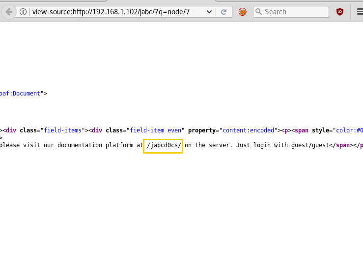 When you look into the page source there will be a line saying “/jabd0cs/ on the server. Just log in with the guest/guest.”