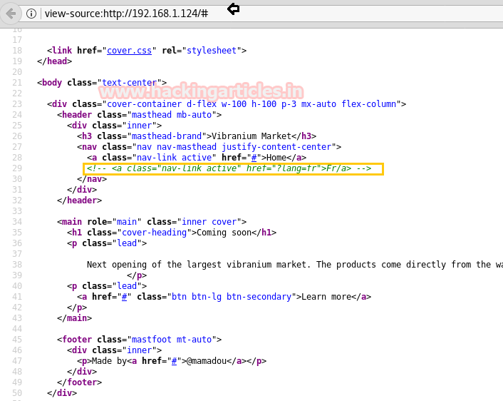 All the pages that we find in the dirb scan have size zero and we don’t find any content on any of the pages. We take a look at the source page of the index file and we find a “lang” parameter commented inside the page.