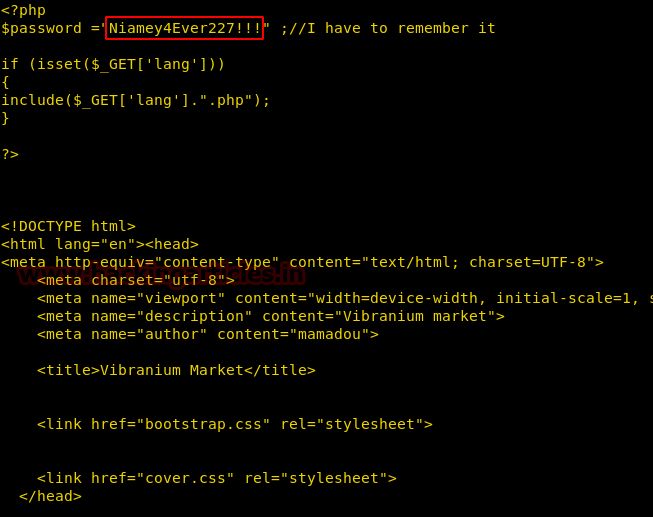We decode the base64 encoded string and find the password “Niamey4Ever227!!!”. On the page, we find that “mamadou” is the author. We use these credentials to login through ssh on the target machine.