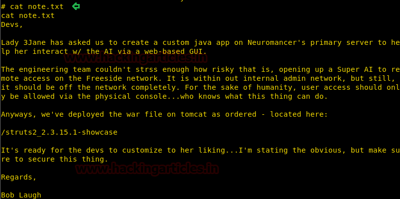 There seems to be another interesting file note.txt, let’s open the same and see what it contains
