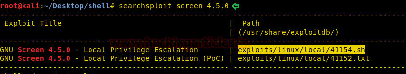 Upon searching exploit in kalilinux for the screen-4.5.0 exploit,