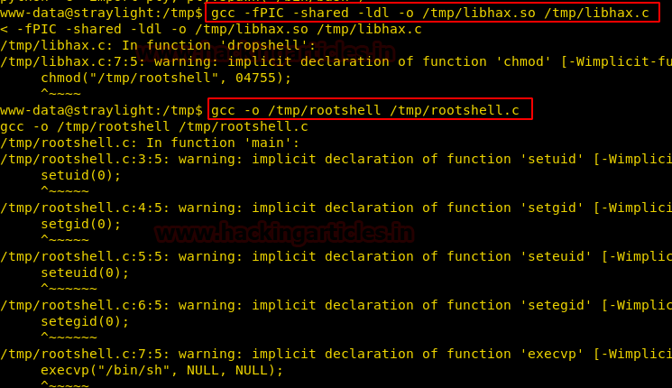 gcc -fPIC -shared -ldl -o /tmp/libhax.so /tmp/libhax.c
