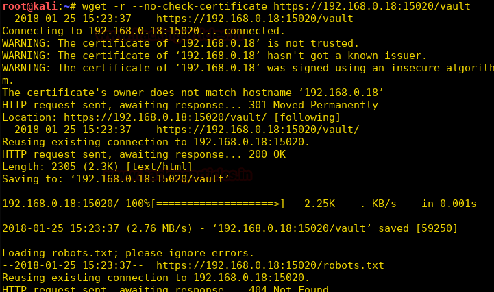wget -r –no-check-certificate http://192.168.0.18:15020/vault