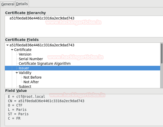Now we open the ip 192.168.0.18 at port 15020 as it is running another apache service. When we open the ip on our browser we find that we need to install ssl certificate. We take a look at the details of the certificate for information; at the issuer section we find our 2nd flag.