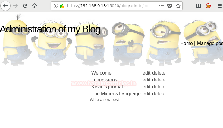 We use username admin and the password we find from hashcat that is “minion.666” to login through the admin page.