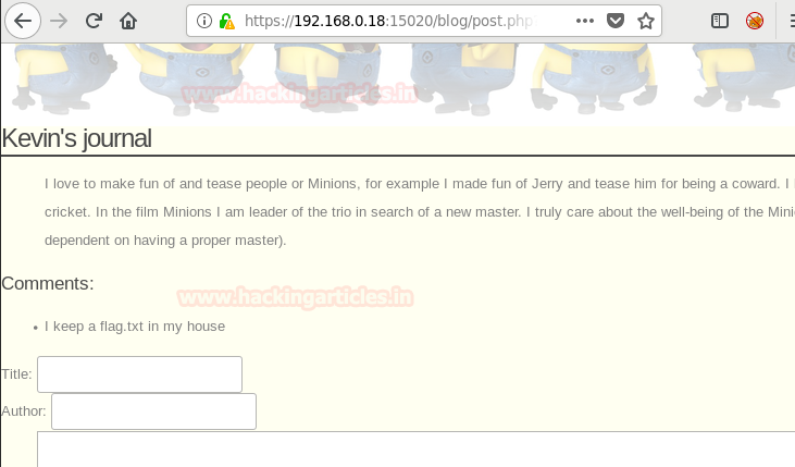 Now going through the blogs we find kevin’s blog with 1 comment that hints it has a flag inside his home directory.