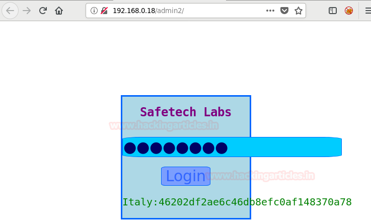 During our directory enumeration we find a page called admin2, we open it in our browser and find it to be login page.