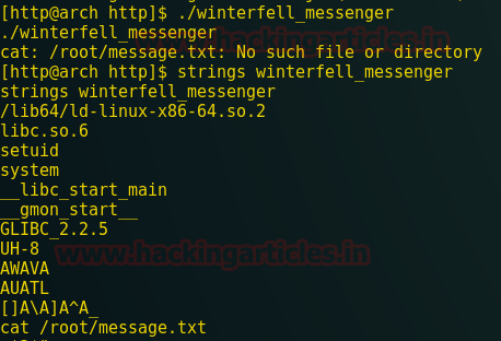 Back to another file in the above list of files i.e. winterfell_messenger . We see its executable and owner is root. So run it with the following command