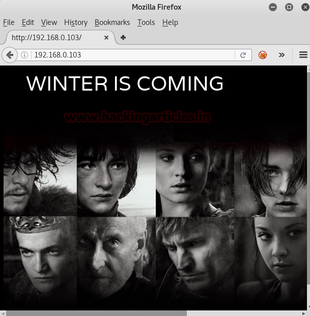 Now try opening target IP in a browser and wait for a few seconds like 10 sec. The proxy setting did the trick and website reveals a single page with a changing banner of “WINTER IS COMING” and “ALL MEN MUST DIE”. Some of you may be aware of this but for those who do not know about this. It is Games of Thrones.