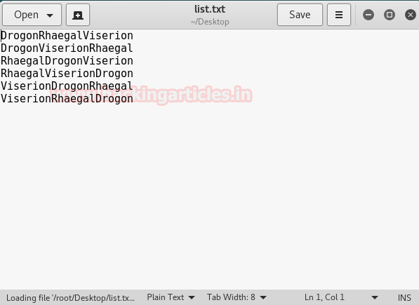 Again I googled and found out she doesn’t have any children rather had 3 dragons named Drogon, Rhaegal, and Viserion. So I put all these names into a file along with all possible combinations.