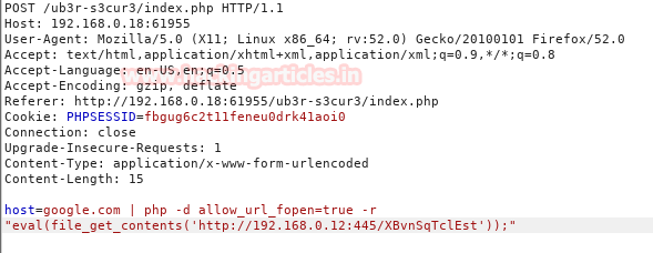 We use burpsuite to capture the request and execute the command given by metasploit to execute our shell.