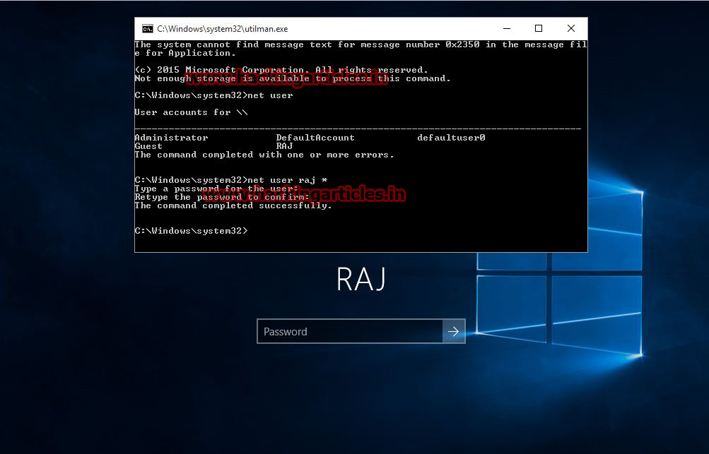 copy d:\windows\system32\cmd.exe d:\windows\system32\utilman.exe
