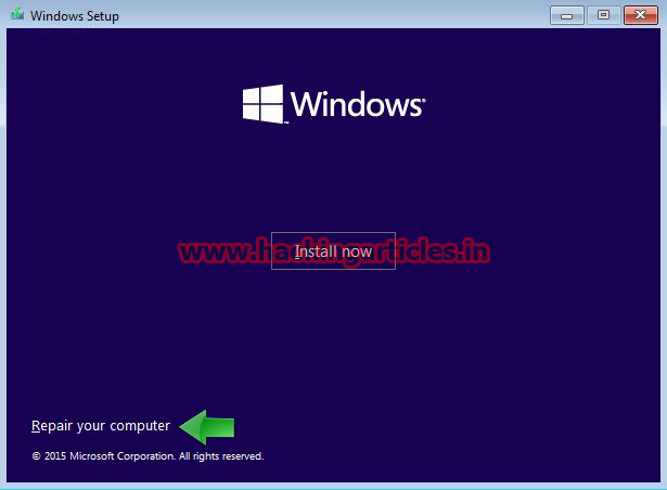 Now select the “Repair your computer” option from the lower left-hand corner.