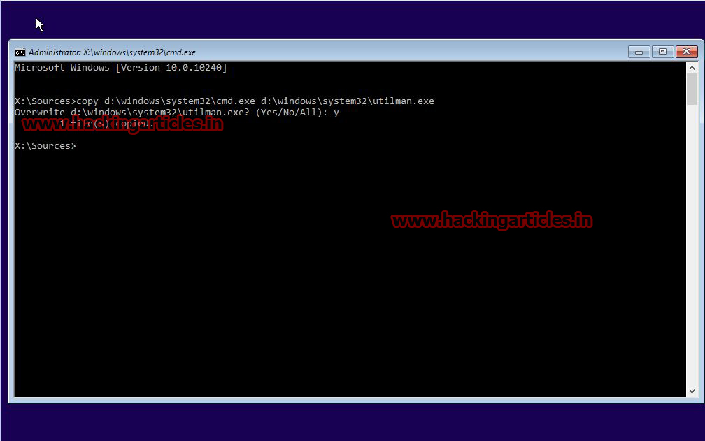 Then you’ll copy the command prompt executable (cmd.exe) over top of utility manager executable