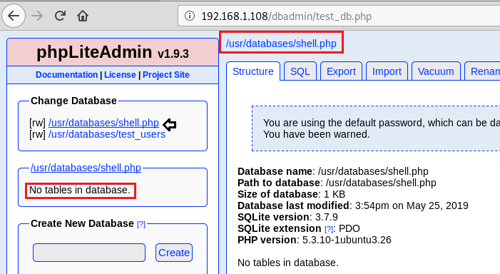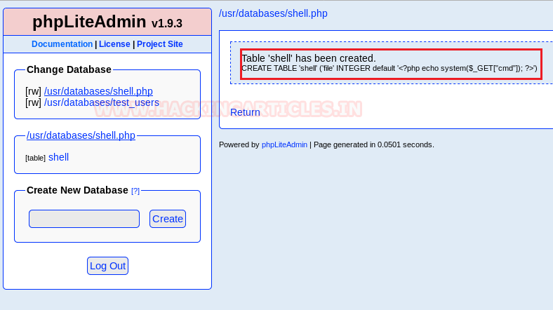Step1: Created a database and named it ‘shell.php’ (we had to add the extension ‘.php’ with the database name)