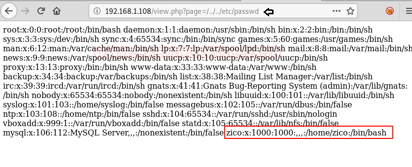 Here I tried to get LFI and succeeded with “/../../etc/passwd”. Now as we can read the content of passwd file we find a user ‘zico’ in there. Let’s just save this info for now.