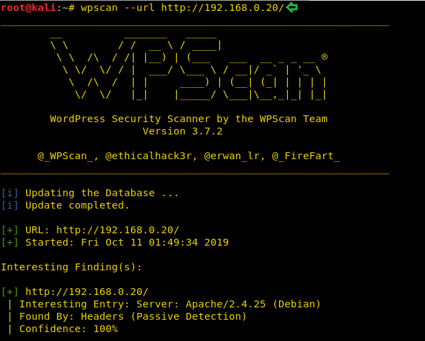This gave us a site that looks like a WordPress site, it’s time to perform a wpscan on the target machine.