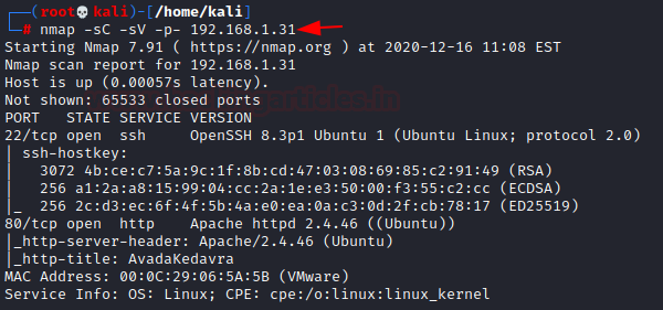 I do always 😊 try to identify Machine IP using our favourite tool named “netdiscover”. Here you can observe the machine we have obtained “192.168.1.31”.