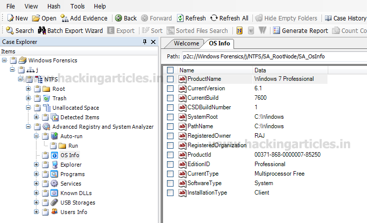 Now Select OS Info option. Through OS Info, we can see the Root Path, Current Version, Registered User, Product ID, Edition ID, and Installation Type.