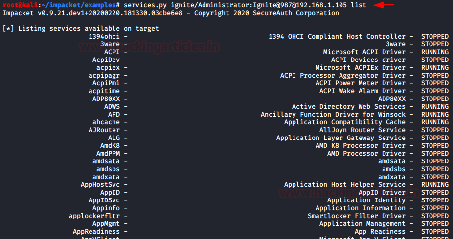 The services script of the Impacket communicates with Windows services with the help of MSRPC Interface. It can start, stop, delete, read status, config, list, create and change any service. While working on Red Teaming assignments there were so many tasks that could have been simplified if only, we have access to the services of the Target machine. This makes it all a simple task.