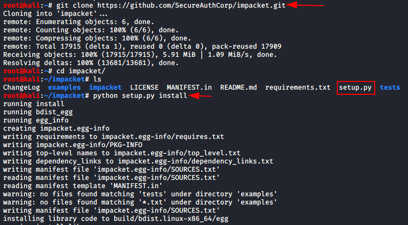 git clone https://github.com/SecureAuthCorp/impacket.git cd impacket/ ls python setup.py install