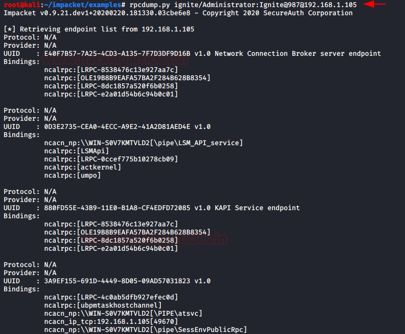 rpcdump.py ignite/Administrator:Ignite@987@192.168.1.105