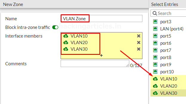 Name the zone to “VLAN Zone” to make it identifiable and add the newly created VLAN’s to it as shown below.