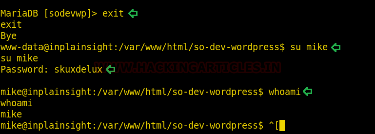 Now, try and switch the user to mike and you can observe in the image below that you can successfully do that; which means cracking the passwords was successful.