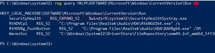 reg query HKLM\SOFTWARE\Microsoft\Windows\CurrentVersion\Run