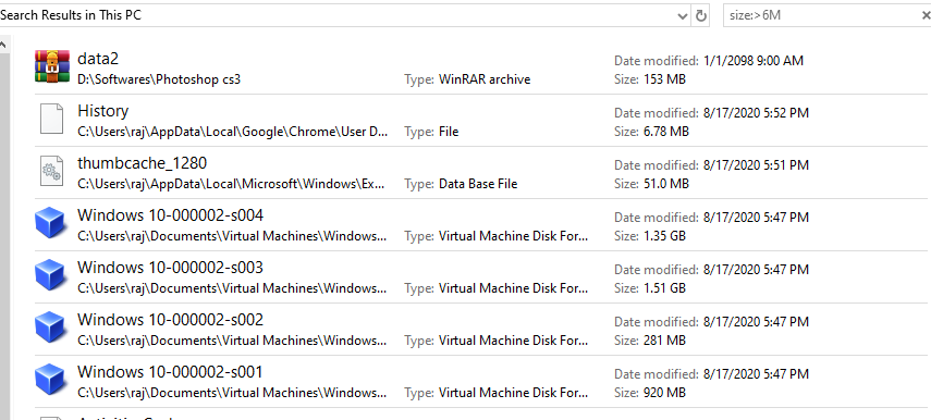 To check for file size below 6MB, you can use the file explorer’s search box and enter