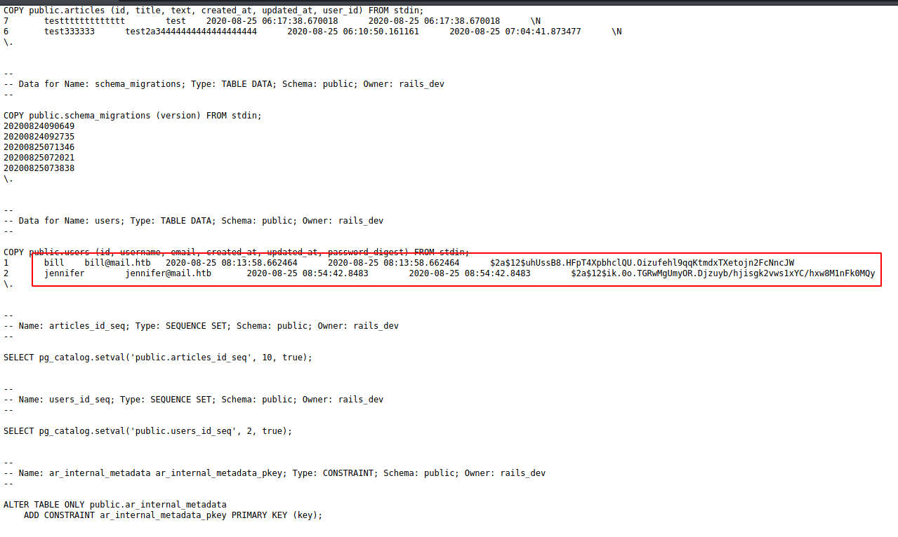 bill bill@mail.htb $2a$12$uhUssB8.HFpT4XpbhclQU.Oizufehl9qqKtmdxTXetojn2FcNncJW jennifer jennifer@mail.htb $2a$12$ik.0o.TGRwMgUmyOR.Djzuyb/hjisgk2vws1xYC/hxw8M1nFk0MQy