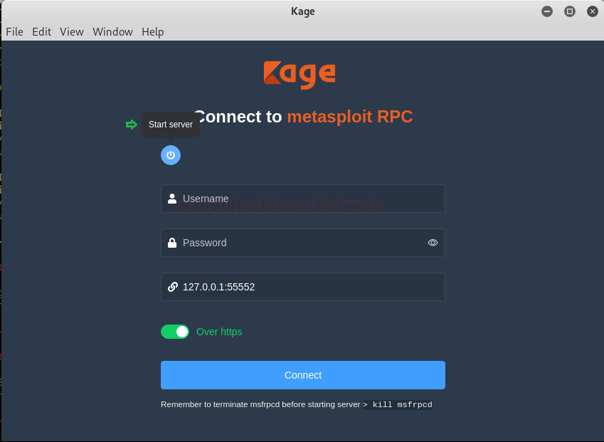 Kage is a GUI for Metasploit RCP servers. It is a good tool for beginners to understand the working of Metasploit as it generates payload and lets you interact with sessions. As this tool is on the process of developing until now it only supports windows/meterpreter and android/meterpreter. For it to work, you should have Metasploit installed in your system. The only dependency it requires is npm.