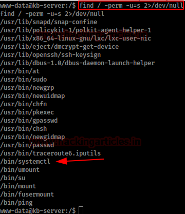 After reviewing the contents of the user’s home page without anything useful, we execute the “find” command to obtain a list of binaries that we have permission to execute.