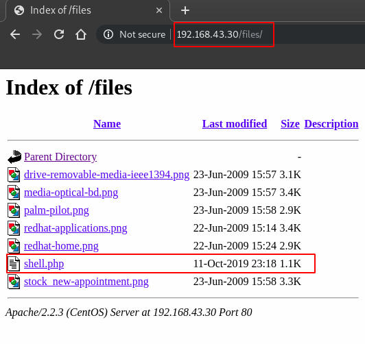 So, to access the ‘shell.php’ we will explore the directory URL: http://192.168.43.30/files/