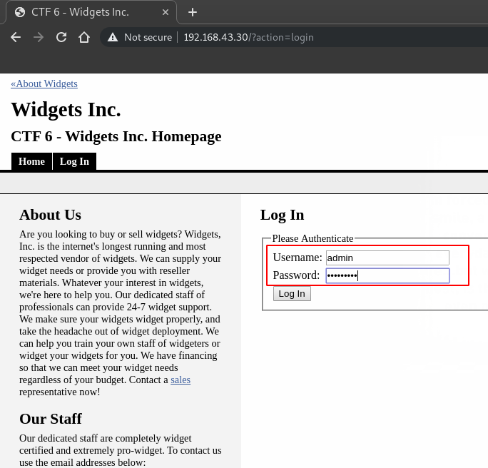 Now let’s try to login into the admin panel using the username: ‘admin’ and password: ‘adminpass’