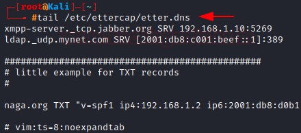 tail /etc/ettercap/etter.dns