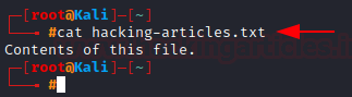 We use the cat command to output the contents of a file on the terminal. Let’s use the cat command on “hacking-articles.txt”.