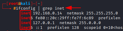 Here we use grep just to get the IP address of our machine, instead of all the other information that comes when running the ifconfig command. (We’ll touch on the ifconfig common in the later section)