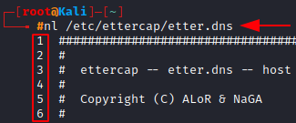 nl /etc/Ettercap/etter.dns