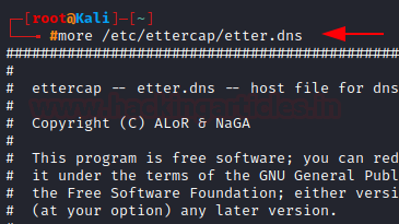 less /etc/ettercap/etter.dns