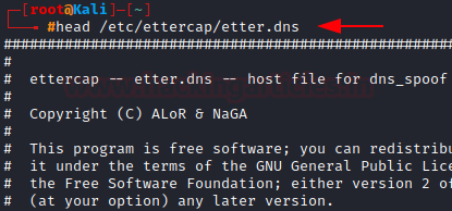 head /etc/Ettercap/etter.dns