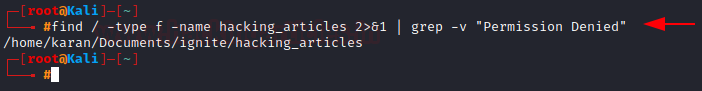 find / -type f -name hacking_articles 2>&1 | grep -v "Permission Denied"