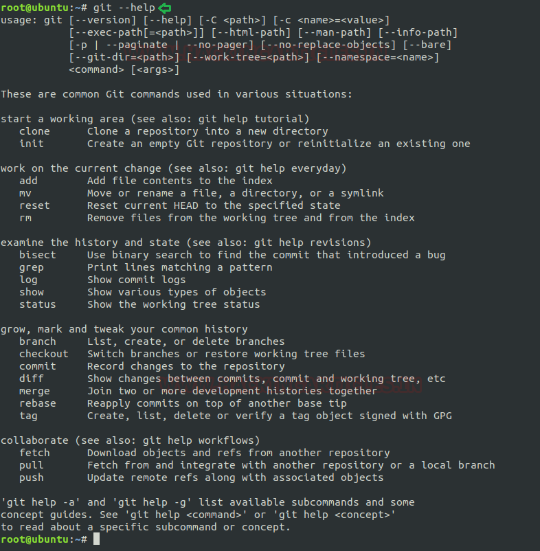 To know more about git command use its help page by the command as below: